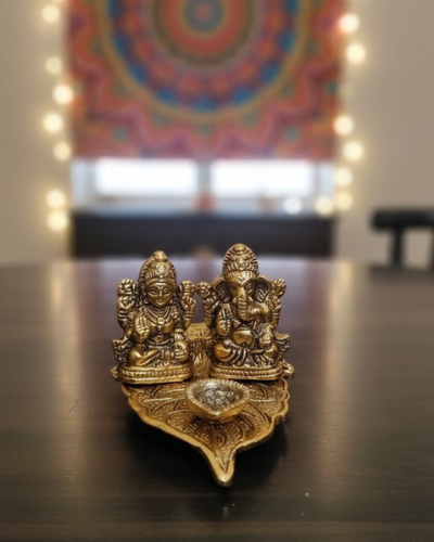 Divine Lakshmi Ganesh Idol with Diya Gift Item