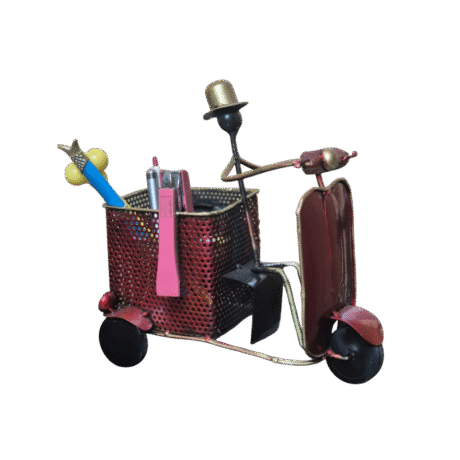 Red Scooter Design Pen Stand with Clock for Office Desk & Home Décor