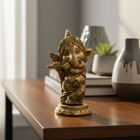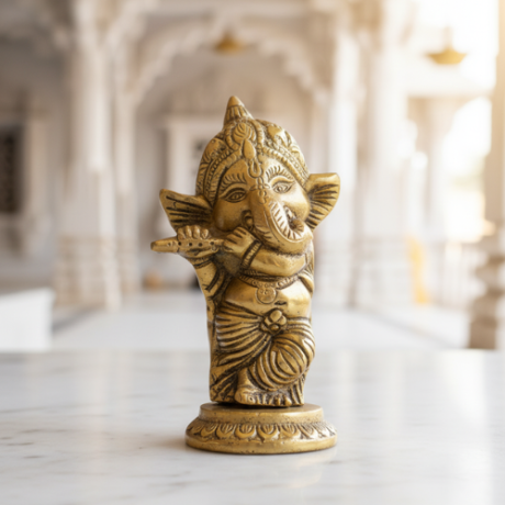 Metal Murli Ganesh Ji Idol for Home Decor | Gift | Showpiece Figurine