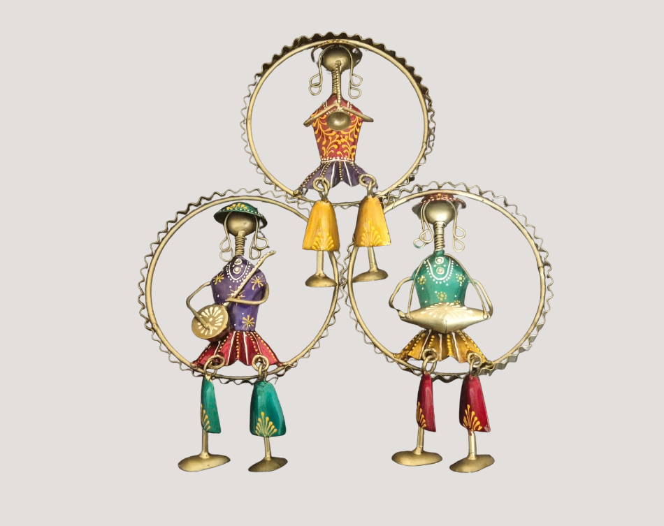 Bring home the charm of art and music with this Handcrafted Round Metal Musician Doll. Meticulously designed from durable metal, this round-shaped figurine captures the essence of traditional musicians, making it a perfect addition to your room, living space, or tabletop decor.