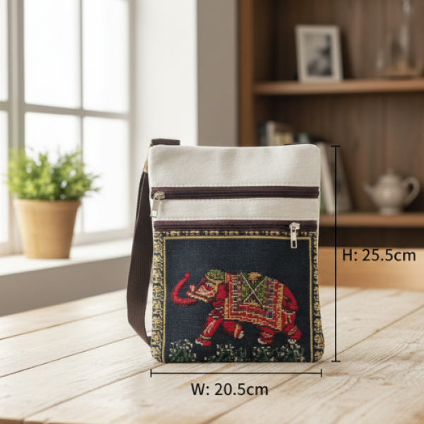 This beautifully crafted Crossbody Tapestry Elephant Bag features vibrant traditional patterns and a detailed elephant motif, offering a perfect blend of culture and style. Made from durable woven tapestry fabric, it’s lightweight, comfortable to carry, and ideal for daily use. The spacious compartment securely holds essentials, making it a stylish choice for travel, college, and casual outings.