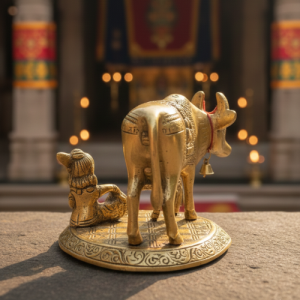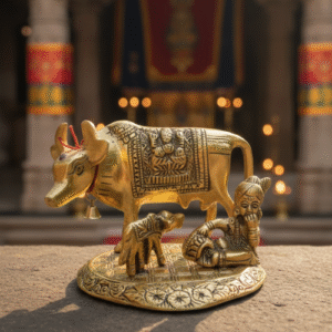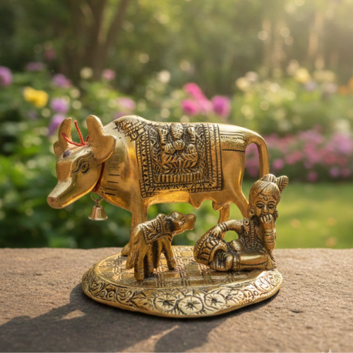 This Golden Vastu Kamdhenu Cow with Calf Idol is a powerful symbol of abundance, purity, and protection. Crafted with premium golden plating, it enhances home décor while correcting Vastu defects. Its divine energy attracts wealth, success, and harmony. Ideal for homes and offices, this idol promotes financial growth, positivity, and overall prosperity, making it a perfect spiritual addition.