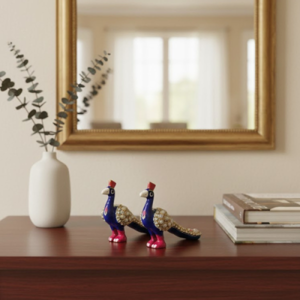Enhance your décor with this Smart Metal Stone Work Peacock Statue Showpiece, beautifully crafted with vibrant multicolor stone detailing. Its elegant peacock design adds charm and positivity to living rooms, bedrooms, offices, and temples. Ideal in size, it is also perfect for decorating Laddu Gopal toys and small mandirs. A graceful decorative figurine that blends traditional artistry with modern décor, making it a thoughtful gift for festivals and special occasions.