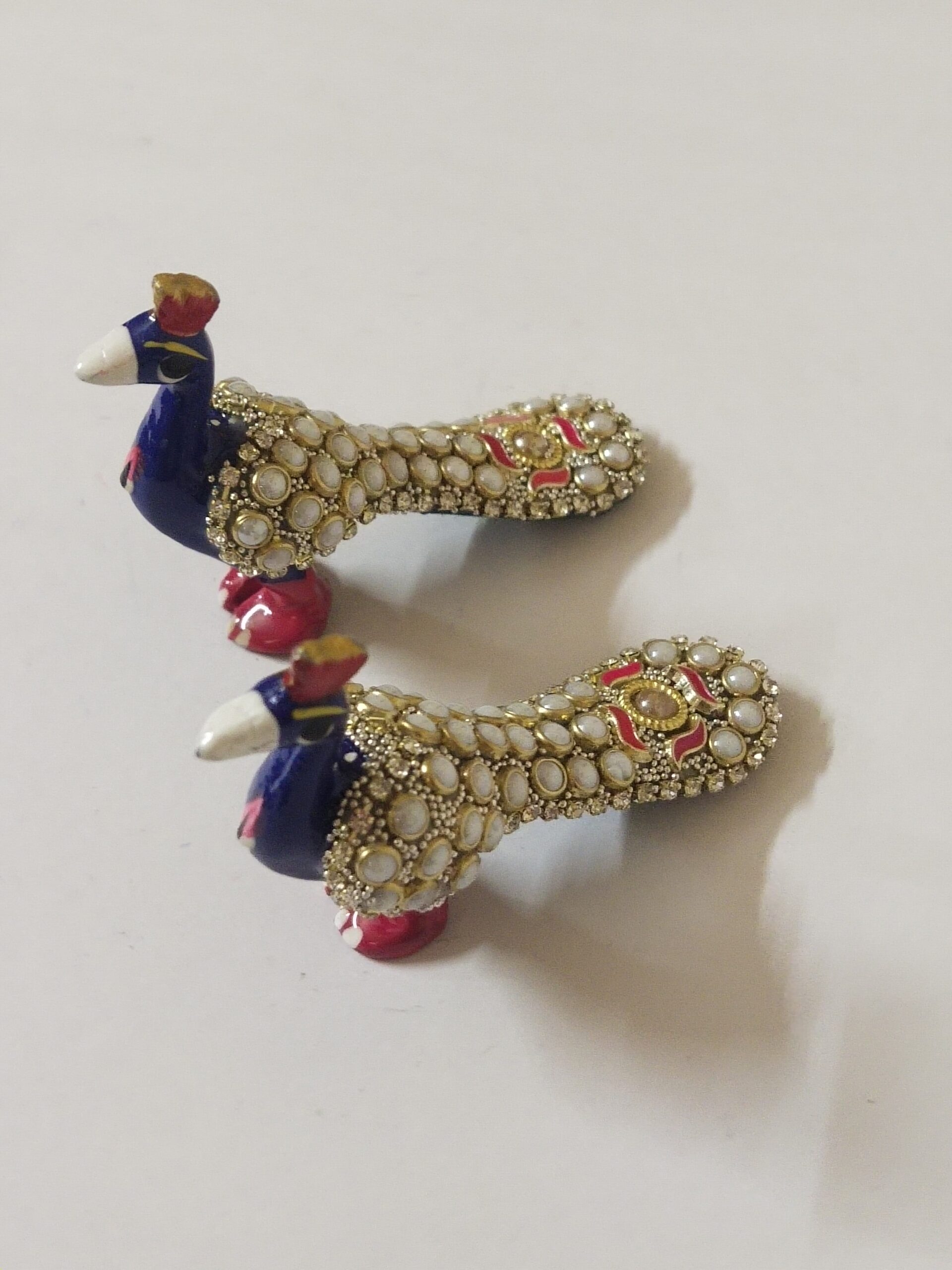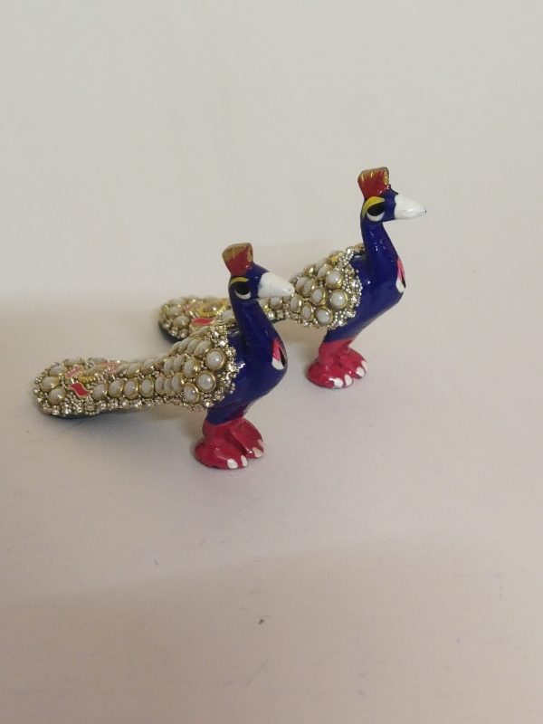 Multicolor smart metal peacock showpiece with stone work detailing, perfect for home, office, bedroom décor, and Laddu Gopal decoration.