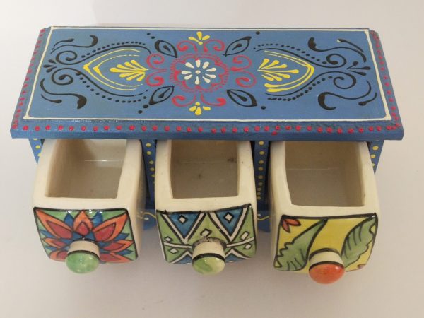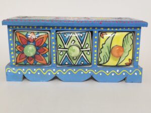 • Hand-painted wooden mini chest drawer organizers with ceramic floral artwork