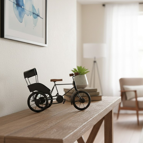 Add a touch of vintage charm to your décor with this handcrafted Metal Cycle Rickshaw Showpiece. Designed with working wheels and fine detailing, it reflects traditional artistry and classic appeal. Ideal for living rooms, offices, cafés, and shelves, this 33 cm miniature cycle rickshaw enhances interiors beautifully and makes a thoughtful gift for décor lovers.